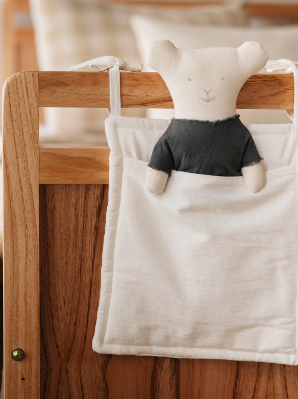 Nuestro bolsillero Abril es el aliado perfecto para tener todo lo que tu bebé necesita siempre a mano. Confeccionado en tusor 100% algodón, combina suavidad, practicidad y un diseño que suma calidez a la cuna.